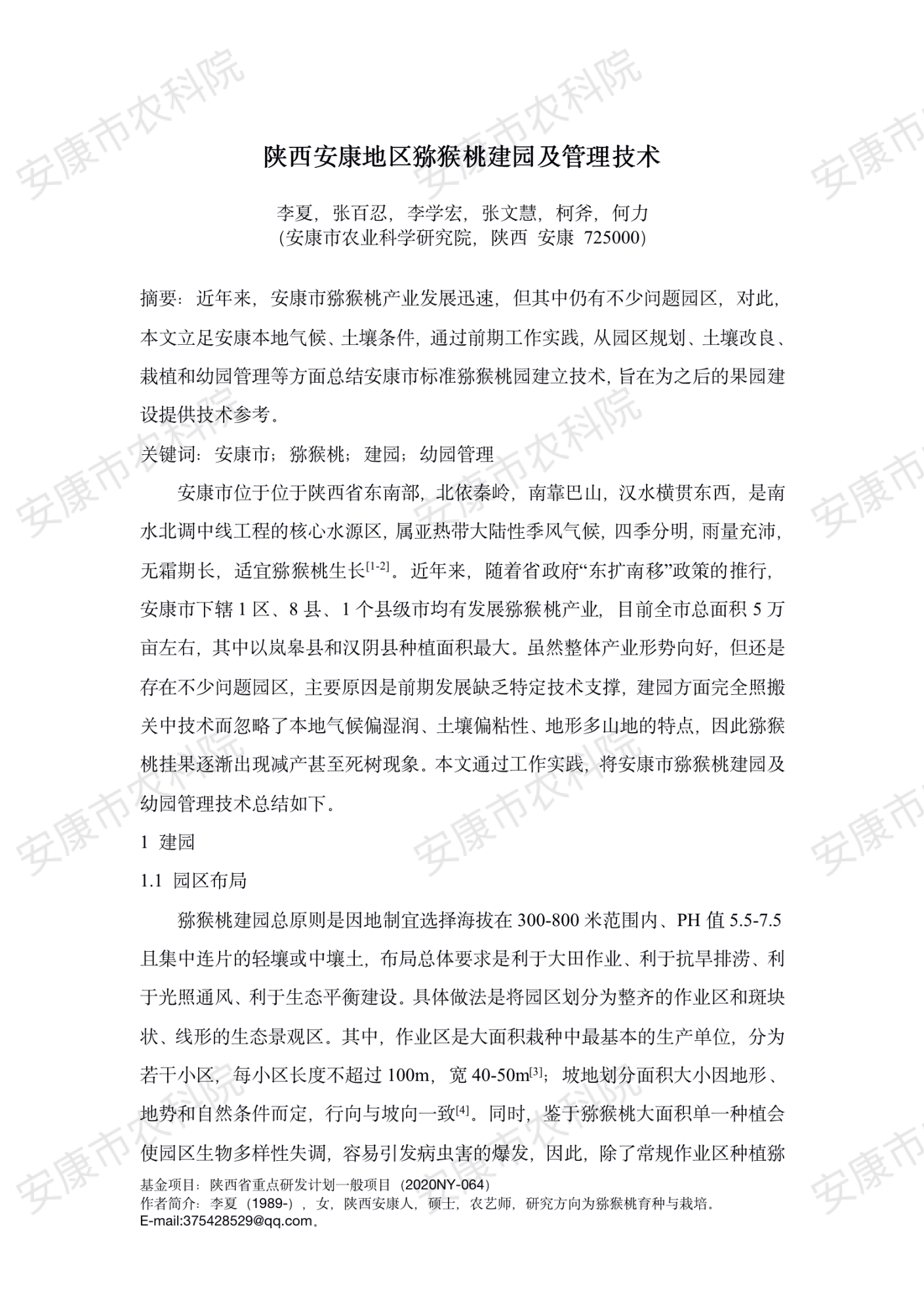 陜西安康地區(qū)獼猴桃建園及管理技術(shù)