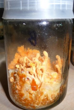 此次我所的蟲草培養(yǎng)是通過將野生蟲草兩個菌株,分別接種到家蠶蟲體和小麥培養(yǎng)基上,進行馴化培養(yǎng),通過多次試驗,調(diào)節(jié)溫度、濕度、光照等措施,成功的獲得蟲草子實體。今后將進一步探索出最佳的適宜生長環(huán)境,為工廠化生產(chǎn)奠定基礎(chǔ)。在傳統(tǒng)桑蠶業(yè)不斷遭受沖擊的形勢下,通過多角度、多渠道的對蠶桑進行綜合利用開發(fā),是對蠶桑產(chǎn)業(yè)轉(zhuǎn)型升級的一個有益嘗試。