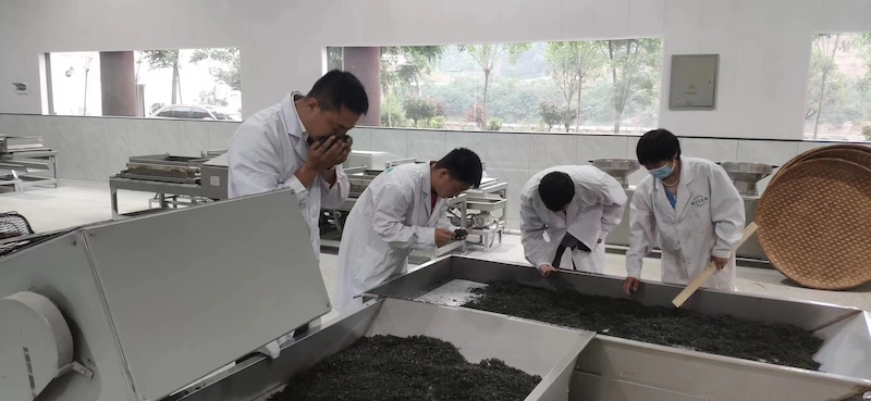 我院茶葉研究所承擔(dān)了2021年安康市科學(xué)技術(shù)局“揭榜掛帥”項(xiàng)目“富硒紅茶精準(zhǔn)化生產(chǎn)技術(shù)體系創(chuàng)建與新產(chǎn)品開發(fā)”,該項(xiàng)目為煥古莊園茶業(yè)科技有限公司需求。劉運(yùn)華一行實(shí)地考察了企業(yè)紅茶生產(chǎn)現(xiàn)狀,了解生產(chǎn)需求,按照項(xiàng)目要求及企業(yè)需求,對(duì)“揭榜掛帥”項(xiàng)目方案進(jìn)行研討,就紅茶加工中的技術(shù)問題與企業(yè)技術(shù)人員展開深入交流。