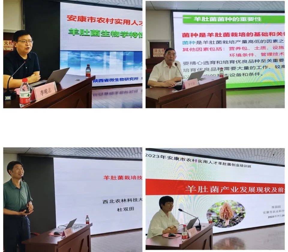 培訓(xùn)邀請(qǐng)了陜西省微生物研究所副所長(zhǎng)李峻志、陜西省食用菌產(chǎn)業(yè)技術(shù)體系崗位專家李含毅、西北農(nóng)林科技大學(xué)教授杜雙田、安康市農(nóng)科院食用菌研究所副所長(zhǎng)張園園等相關(guān)領(lǐng)域?qū)<?,圍繞羊肚菌產(chǎn)業(yè)發(fā)展現(xiàn)狀及前景、羊肚菌生物學(xué)特性及技術(shù)發(fā)展歷程、羊肚菌穩(wěn)產(chǎn)技術(shù)要點(diǎn)、羊肚菌菌種選擇與種植注意事項(xiàng)等專業(yè)知識(shí)進(jìn)行授課,幫助學(xué)員們熟悉掌握羊肚菌栽培理論基礎(chǔ)、產(chǎn)業(yè)發(fā)展趨勢(shì)、產(chǎn)品等級(jí)分類及加工標(biāo)準(zhǔn)、仿生栽培技術(shù)等知識(shí),進(jìn)一步提升羊肚菌高產(chǎn)高效種植技術(shù)整體水平,推進(jìn)農(nóng)業(yè)產(chǎn)業(yè)結(jié)構(gòu)調(diào)整,引領(lǐng)群眾走上羊肚菌種植致富之路。