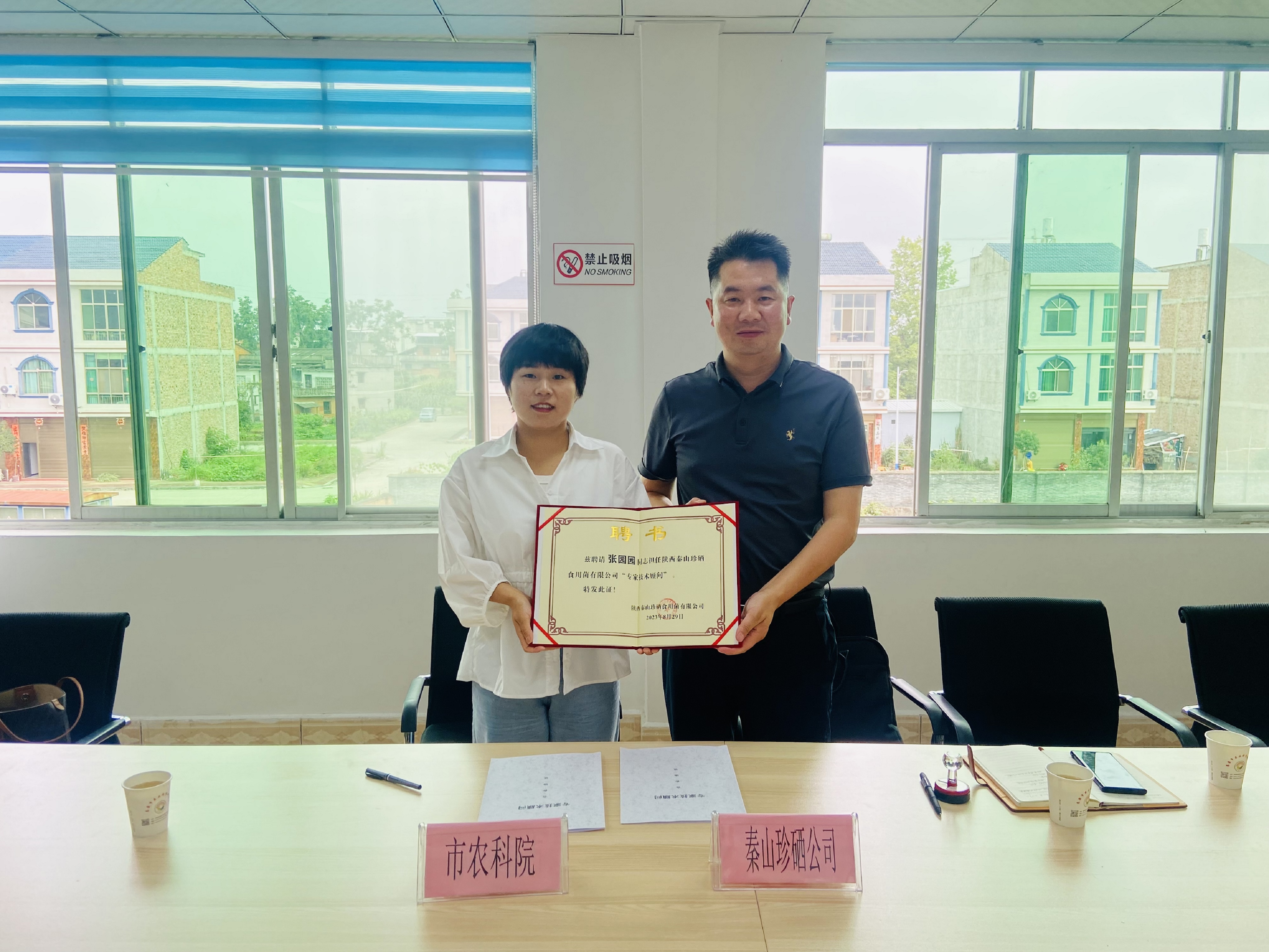 在座談會上,陜西秦山珍硒食用菌有限公司董事長余功軍與市農(nóng)科院食用菌研究所副所長張園園簽訂了專家技術(shù)顧問合作協(xié)議,并頒發(fā)聘書。余功軍表示,通過聘任專家技術(shù)顧問能更好更快地解決企業(yè)技術(shù)難題,提升企業(yè)科技創(chuàng)新能力,我們會創(chuàng)造條件提供全方位支持。張園園表示,將認真履行專家責(zé)任,積極建言獻策,并結(jié)合富硒研究、項目申報,聯(lián)合開展新品種選育、新技術(shù)集成及產(chǎn)品開發(fā)等關(guān)鍵技術(shù)攻關(guān),為企業(yè)高質(zhì)量發(fā)展提供科技支撐。