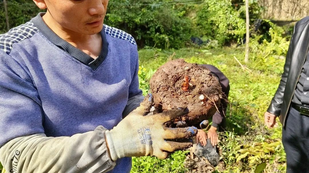 在漢濱區(qū)早陽鎮(zhèn)、石泉縣云霧山鎮(zhèn)盆栽魔芋基地,調(diào)研人員與縣區(qū)鎮(zhèn)技術(shù)人員、經(jīng)營主體對盆栽魔芋安魔128、花魔芋、白魔芋等品種進(jìn)行了現(xiàn)場開挖和測產(chǎn),各品種的膨大倍數(shù)均超過10倍以上,最大的魔芋2.5公斤,最小的魔芋1.2公斤,根狀莖最多的達(dá)56個。據(jù)云霧山鎮(zhèn)盆栽魔芋負(fù)責(zé)人曾旭兵介紹,今年云霧山鎮(zhèn)發(fā)展盆栽魔芋4500余盆,預(yù)計可收獲商品芋超2500公斤,種芋超過1500公斤,增產(chǎn)幅度超過10%。