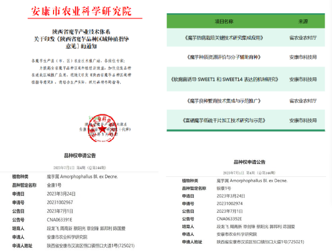 1.制定《陜西省魔芋品種區(qū)域種植指導(dǎo)意見》,實施科研項目5項,篩選優(yōu)良株系3個,保護(hù)新品種2個。