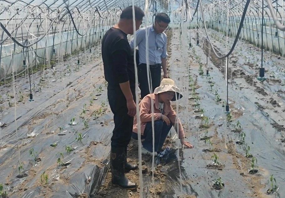 在堰坪村集體經濟合作社蔬菜保供基地,科研人員實地查看了育苗溫棚內貝貝南瓜、線椒種苗生長狀況,就種苗管理、移栽技術要點與負責人對進行交流,建議大棚內要根據實際情況做好保溫、通風,注意防治疫病和猝倒病,定值前進行煉苗,并提前做好種植地塊的消毒、施肥、鋪設灌溉設施等工作。