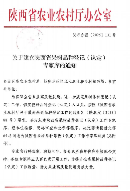 近日,陜西省農(nóng)業(yè)農(nóng)村廳辦公室印發(fā)通知,決定建立陜西省果樹品種登記(認定)專家?guī)臁J修r(nóng)科院果蔬所所長、高級農(nóng)藝師張文慧成功入選,成為安康市唯一入選該專家?guī)斓膶<?。這不僅是對其個人專業(yè)水平的高度認可,更是對安康市果業(yè)發(fā)展成果的充分肯定。