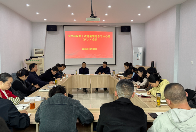 近日,市農科院召開黨委理論學習中心組(擴大)會議,傳達學習黨的二十屆四中全會精神。院黨委書記、紀委書記謝勇主持會議并就貫徹落實全會精神進行安排部署,全院黨員干部職工參加了會議。