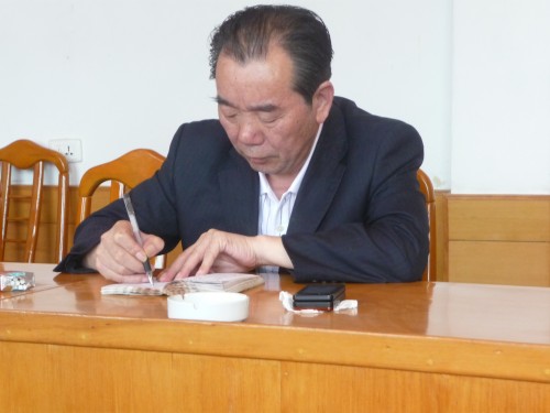我所食用菌專家江新華向龔道云調(diào)研員匯報食用菌產(chǎn)業(yè)發(fā)展情況