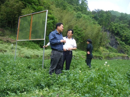 58日,我所專家組在劉繼瑞副所長的帶領下,匯同縣農技中心,銅錢關鎮(zhèn)政府主要領導前往示范基地,走村入戶,田間地頭實地查看馬鈴薯生長情況。目前整個高產示范項目區(qū)內馬鈴薯已開花現(xiàn)蕾、長勢喜人。前不久省農技總站領導在對全省項目檢查時,專程前往該地進行檢查,給予高度評價,并一致認為,馬鈴薯種植集中連片,密度合理,出苗整齊、長勢良好。并對這種所、企合作模式給予極大的鼓勵。
