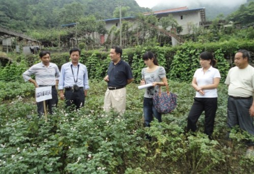 7月6日,國(guó)家南方馬鈴薯中心黃大恩教授一行來我所檢查馬鈴薯國(guó)家區(qū)域試驗(yàn)工作,我所鎮(zhèn)坪高山試驗(yàn)站,承擔(dān)了我國(guó)西南片區(qū)馬鈴薯區(qū)域試驗(yàn)工作。在劉繼瑞副所長(zhǎng)的陪同下,黃教授察看了試驗(yàn)站所承擔(dān)的國(guó)家馬鈴薯區(qū)域試驗(yàn)的生長(zhǎng)情況和試驗(yàn)記錄等。針對(duì)馬鈴薯晚疫病高發(fā)情況,黃教授詳細(xì)了解了田間馬鈴薯的發(fā)病原因,并高度評(píng)價(jià)了我所試驗(yàn)站今年所做的工作。劉繼瑞表示,我所還要加強(qiáng)對(duì)高山站的建設(shè),從設(shè)施、人才隊(duì)伍、以及科研經(jīng)費(fèi)上給予大力支持,為我所加快馬鈴薯新品種選育打下堅(jiān)實(shí)的基礎(chǔ)。