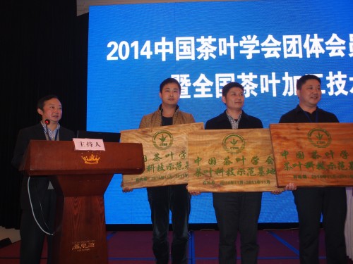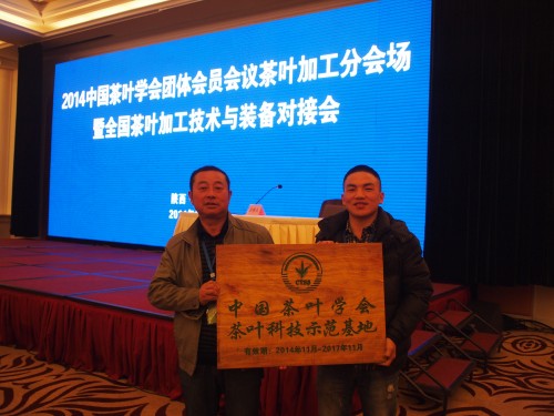 2014年11月25-27日,以“科技創(chuàng)新·產(chǎn)業(yè)發(fā)展”為主題的“2014中國茶葉學(xué)會團體會員會議”在陜西省咸陽市召開。陜西省副省長祝列克、中國科協(xié)副主席馮長根、中國工程院副院長劉旭出席會議。大會宣布了 “中國茶葉學(xué)會茶葉科技示范基地”評選結(jié)果并進行了授牌儀式,安康市農(nóng)科所茶葉基地被授予“中國茶葉學(xué)會茶葉科技示范基地”稱號。