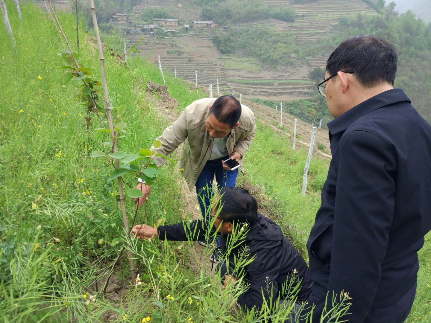 隨后對白河縣老柴林果合作社獼猴桃園區(qū)進行了現(xiàn)場查看指導,對獼猴桃園提出一下建議: