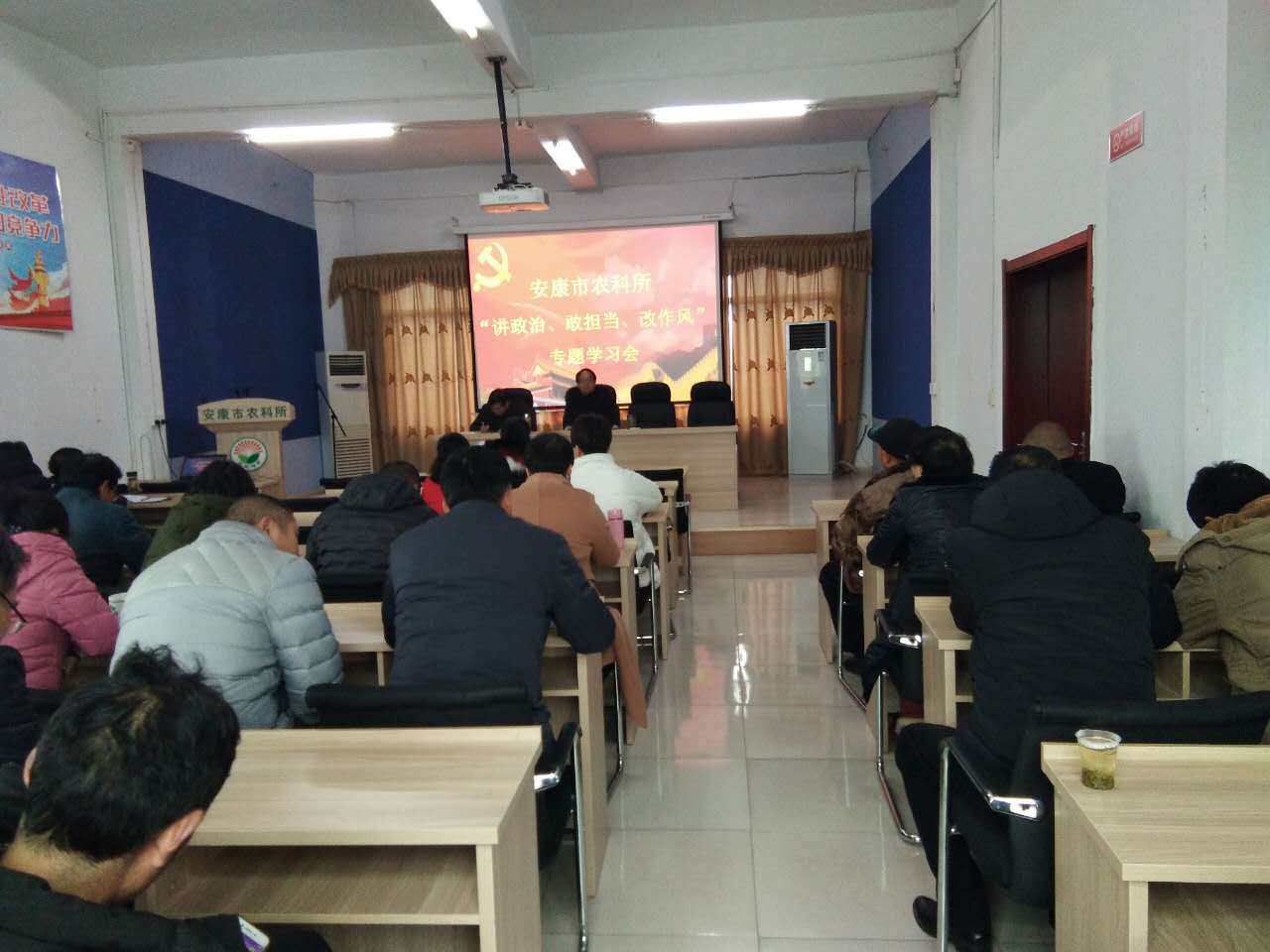 為認(rèn)真貫徹學(xué)習(xí)市委“講政治、敢擔(dān)當(dāng)、改作風(fēng)”專題教育精神,按照市農(nóng)業(yè)局黨委關(guān)于開展“講政治、敢擔(dān)當(dāng)、改作風(fēng)”專題學(xué)習(xí)工作要求,2019年1月4日下午2點(diǎn),安康市農(nóng)科所組織全體職工召開“講政治、敢擔(dān)當(dāng)、改作風(fēng)”專題學(xué)習(xí)會(huì)。
