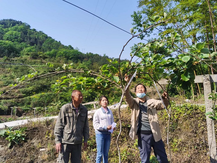 在唐灣村的獼猴桃園區(qū),果蔬所專家就當前園子的栽植規(guī)模、種植效益和存在問題等與負責人進行深入交流,并實地開展技術(shù)指導,針對園區(qū)存在的畝產(chǎn)低和效益差的問題,提出園區(qū)整改方案:1)加強獼猴桃枝條管理,有選擇的修剪枝蔓,適時吊蔓培養(yǎng)壯枝;2)合理施肥,一年中至少開展4次施肥作業(yè),前期除了施用有機肥還需補充適量復合肥,以促進樹勢強壯;3)園區(qū)需配套滴灌設(shè)施,緩解夏季高溫及干旱;4)行間覆蓋,保墑保水。