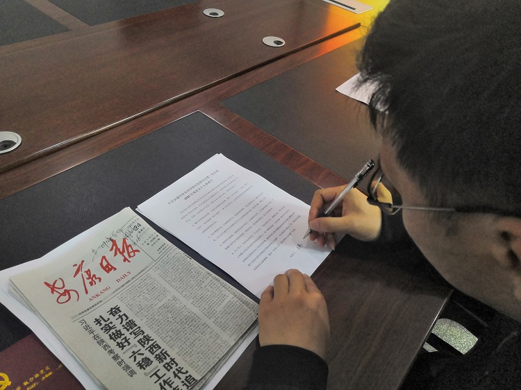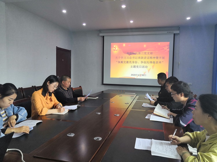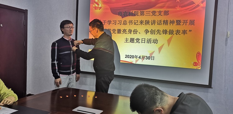 為了激勵黨員干部守初心、擔(dān)使命、勇作為,現(xiàn)場舉行了“佩戴黨徽亮身份、爭創(chuàng)先鋒做表率”活動,王勇書記為支部黨員佩戴了黨徽,支部黨員現(xiàn)場簽訂了2020年度黨員個人承諾書。隨后,集體學(xué)習(xí)了習(xí)近平總書記來陜考察重要講話重要指示精神及《扎實(shí)做好“六穩(wěn)”工作落實(shí)“六?!比蝿?wù),奮力譜寫陜西新時代追趕超越新篇章》,茶葉研究所劉運(yùn)華、薯類研究所蔡陽光分別就科技助力茶產(chǎn)業(yè)發(fā)展、黨員佩戴黨徽的意義等方面進(jìn)行了交流發(fā)言。