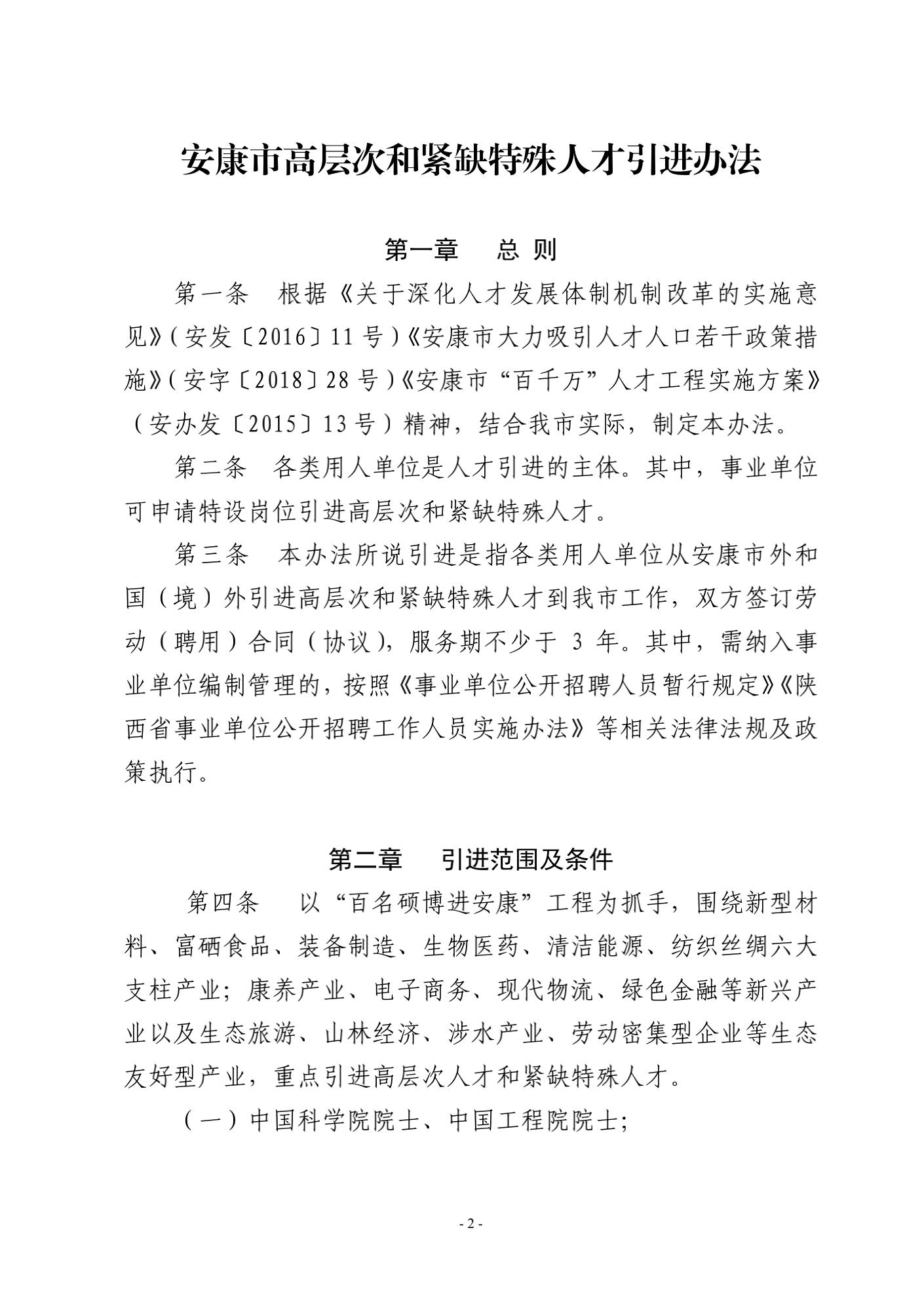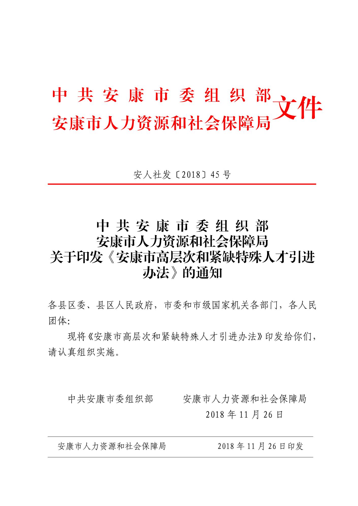 關(guān)于印發(fā)《安康市高層次和緊缺特殊人才引進 辦法》的通知
